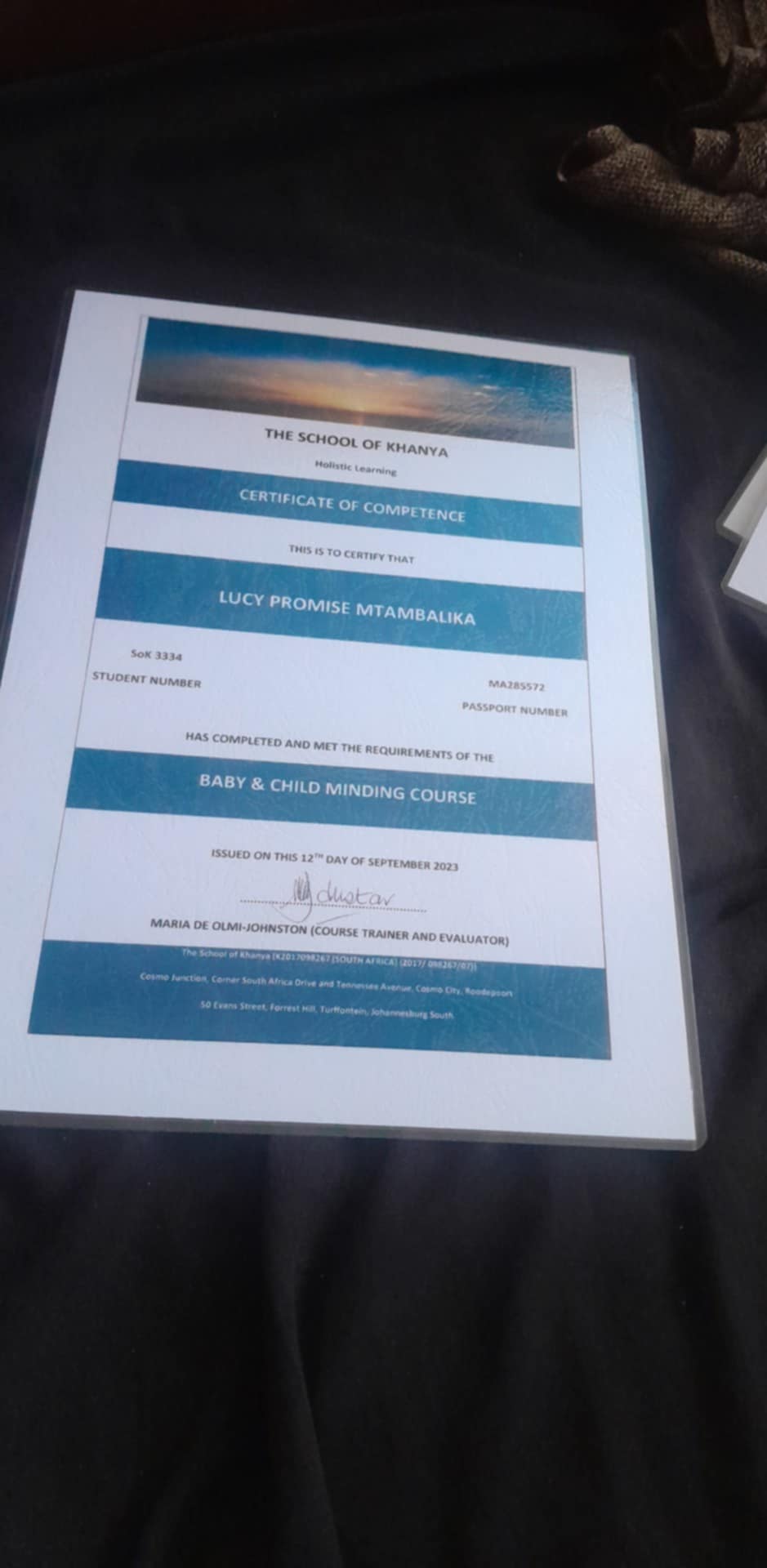 Certificates from The School of Khanya